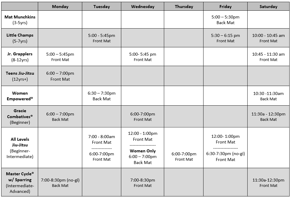 This Certified Gracie Jiu-Jitsu Training Center is independently owned and operated. Gracie Jiu-Jitsu®, Gracie Combatives®, Gracie Bullyproof®, Women Empowered®, and Certified Gracie Jiu-Jitsu Training Center®, are registered trademarks used under license from Gracie University.